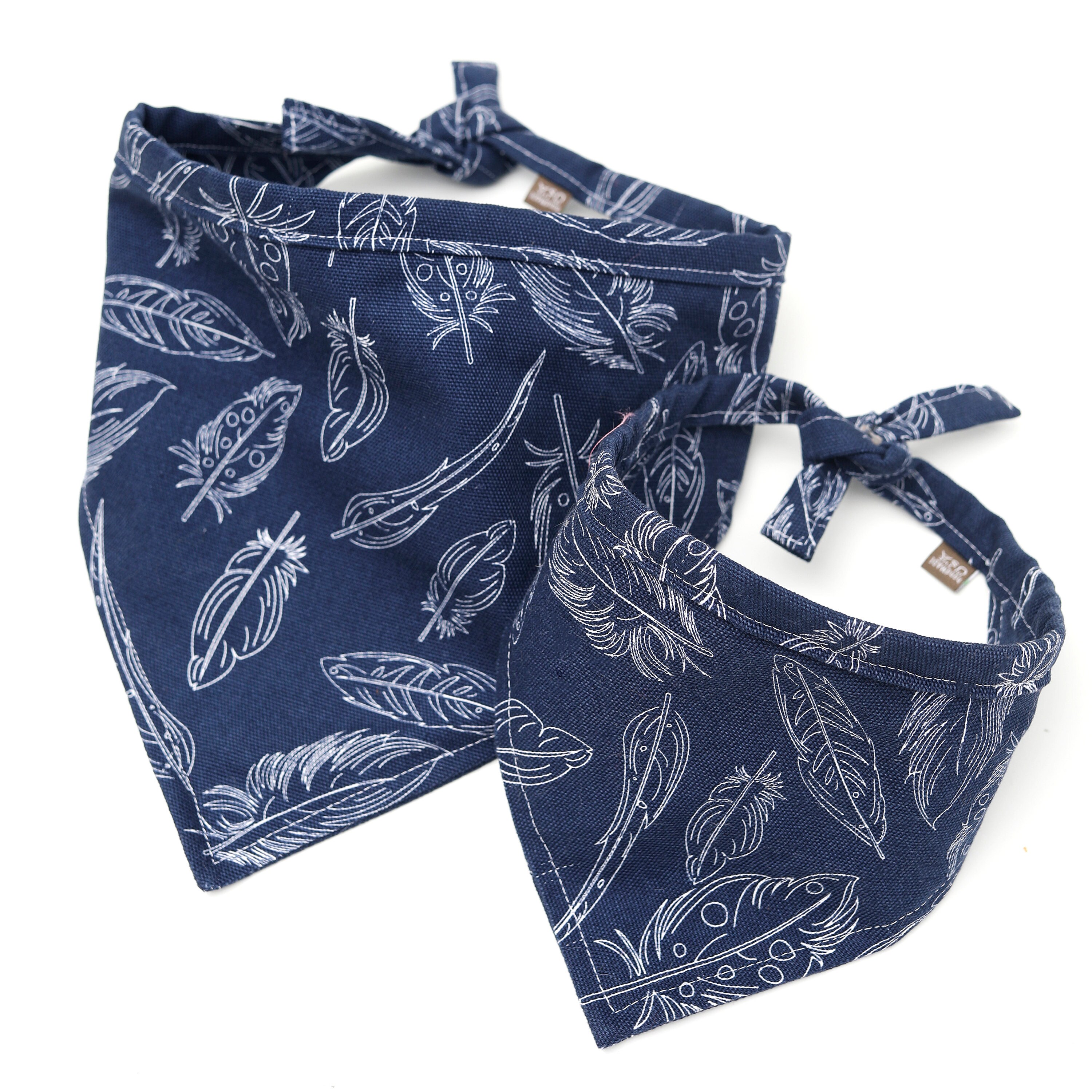 Quill Feather Print Canvas Dog Bandana Navy Blue Canvas Etsy India